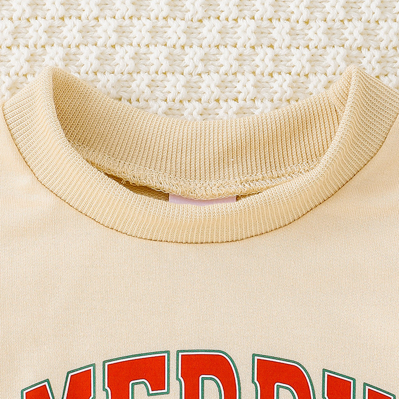 Celebrate the holidays in adorable comfort  with this  “MERRY” Christmas-themed sweatshirt and pants set ! Designed for  6-24 months , this  ultra-soft  set  keeps your little one  snug and stylish  for  family gatherings, photoshoots, and festive outings .